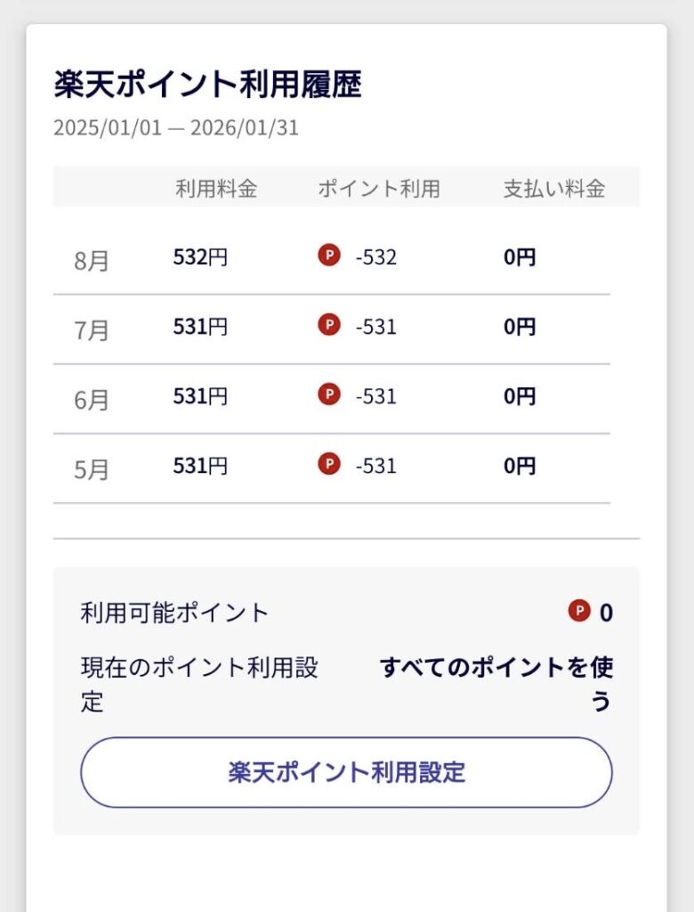 利用料金は、楽天ポイント支払いもできる